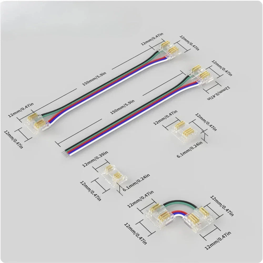 These connectors ensure a secure, reliable connection for your COB LED strip lights, keeping your lighting stable and functional. Easy to use for both DIY and professional setups—just insert the LED strip into the slotted end, the 4-core cable into the dotted end, and secure with pliers (plastic recommended). A simple, efficient solution for hassle-free LED installations.