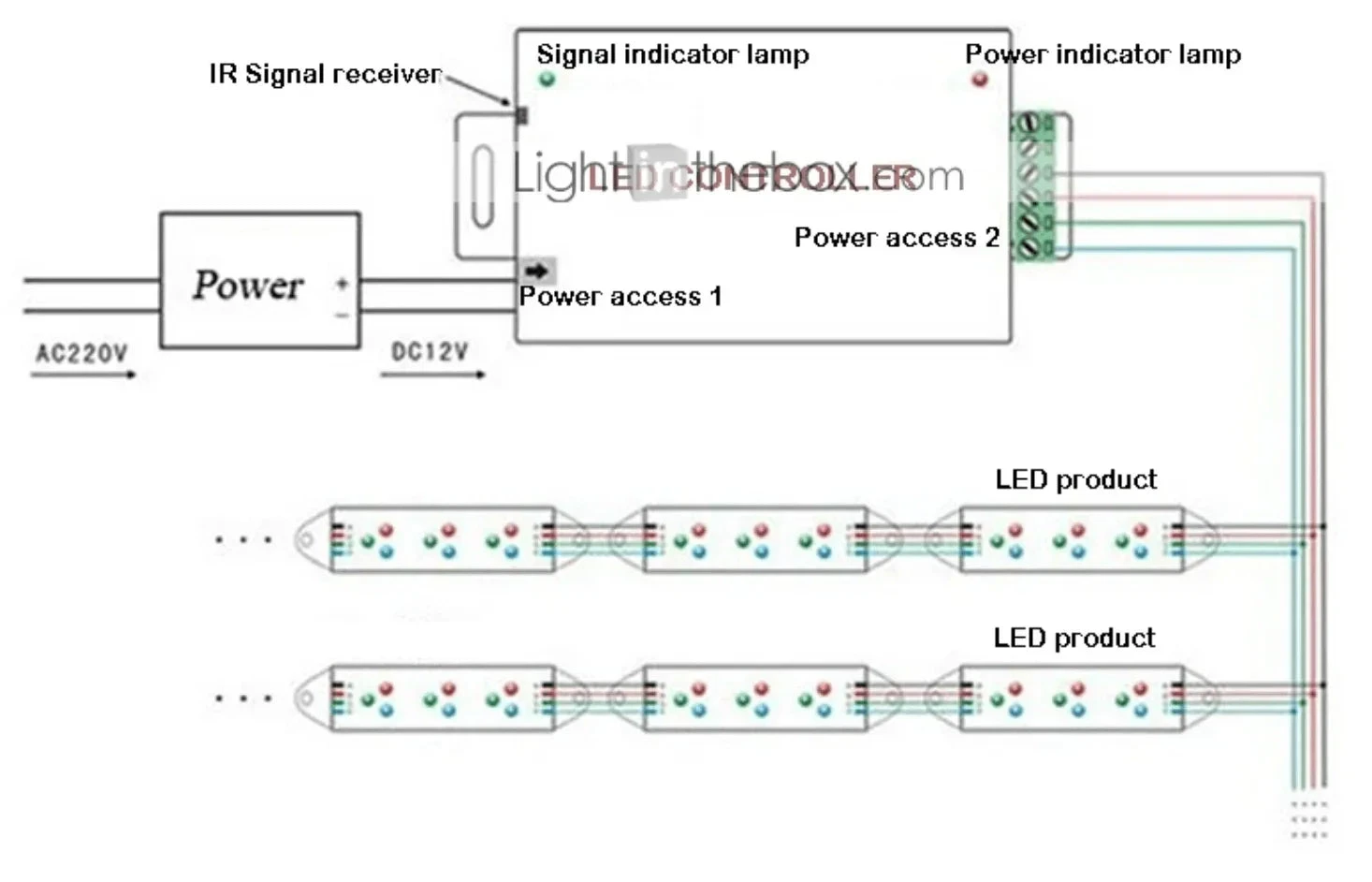 - Compliant for conventional RGB strips with LED size 3528, 5050 & 5056