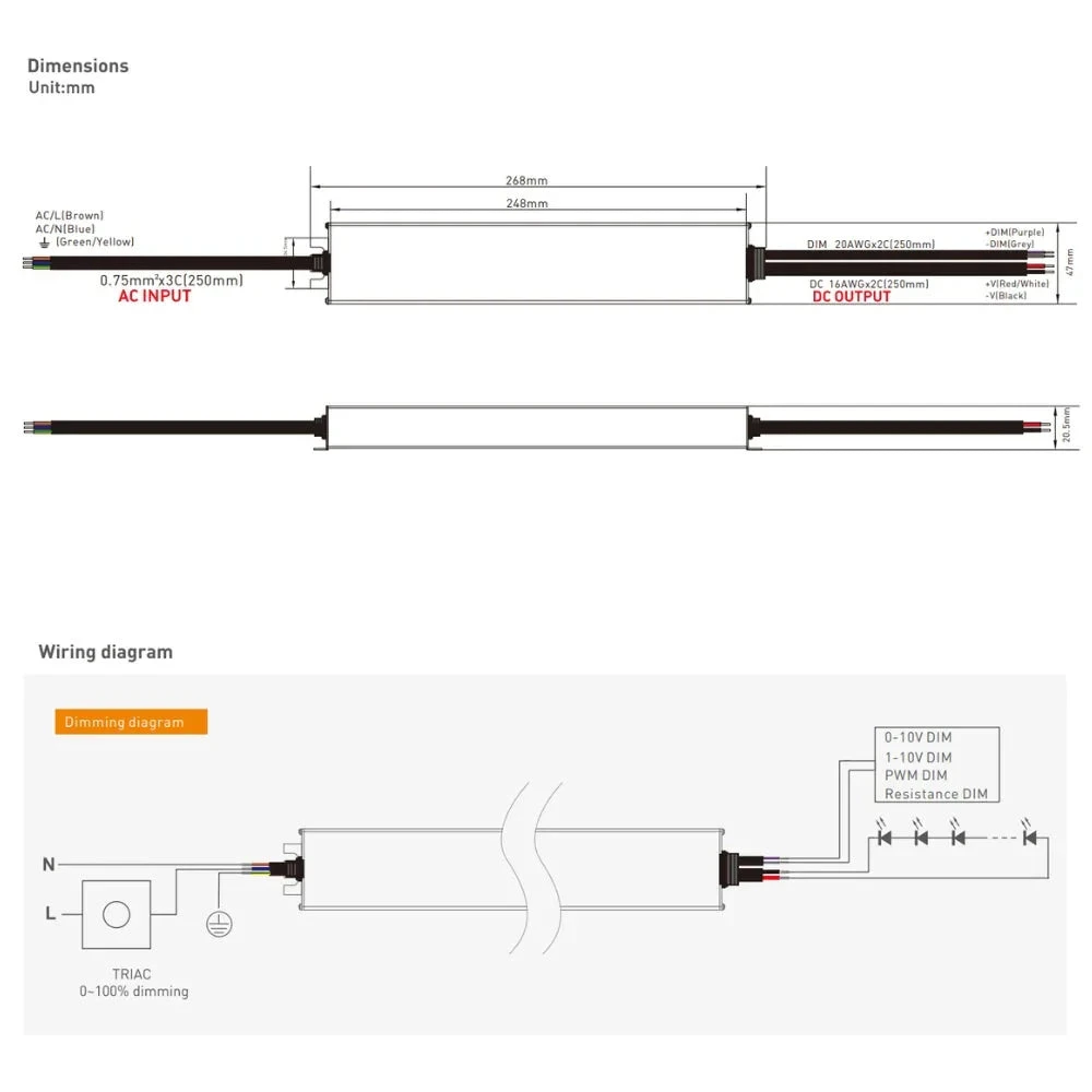Dimming Range: 0~100%, dimming depth: Max. 1%