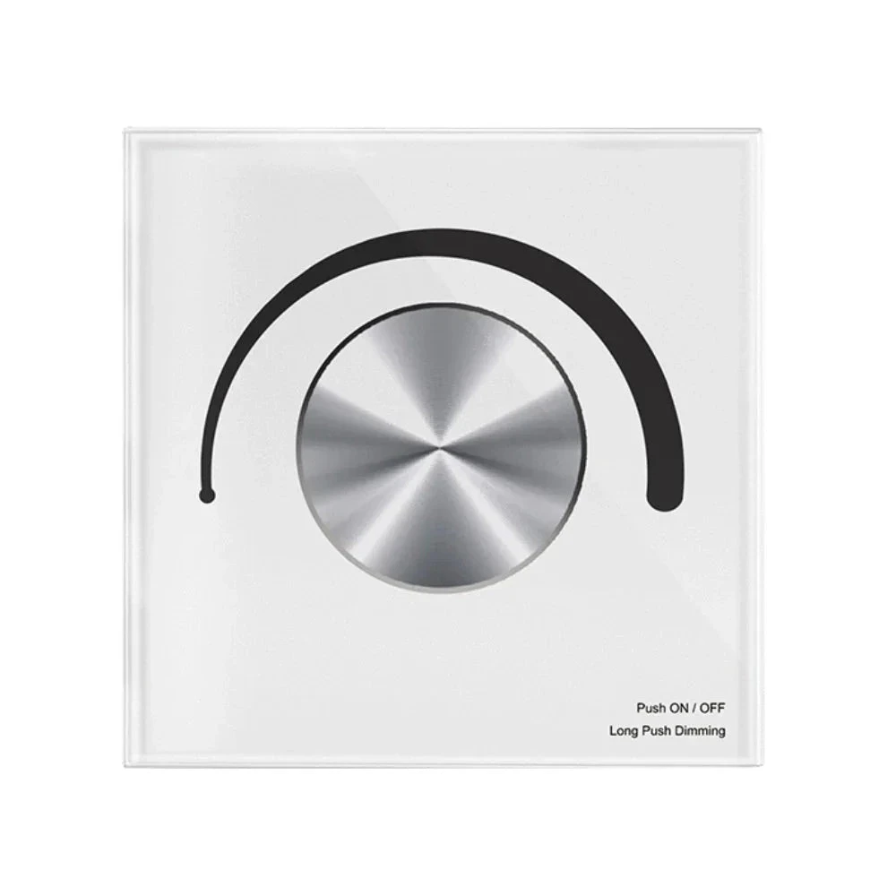 - Rotary glass panel AC phase-cut dimmer, 1 channel output.