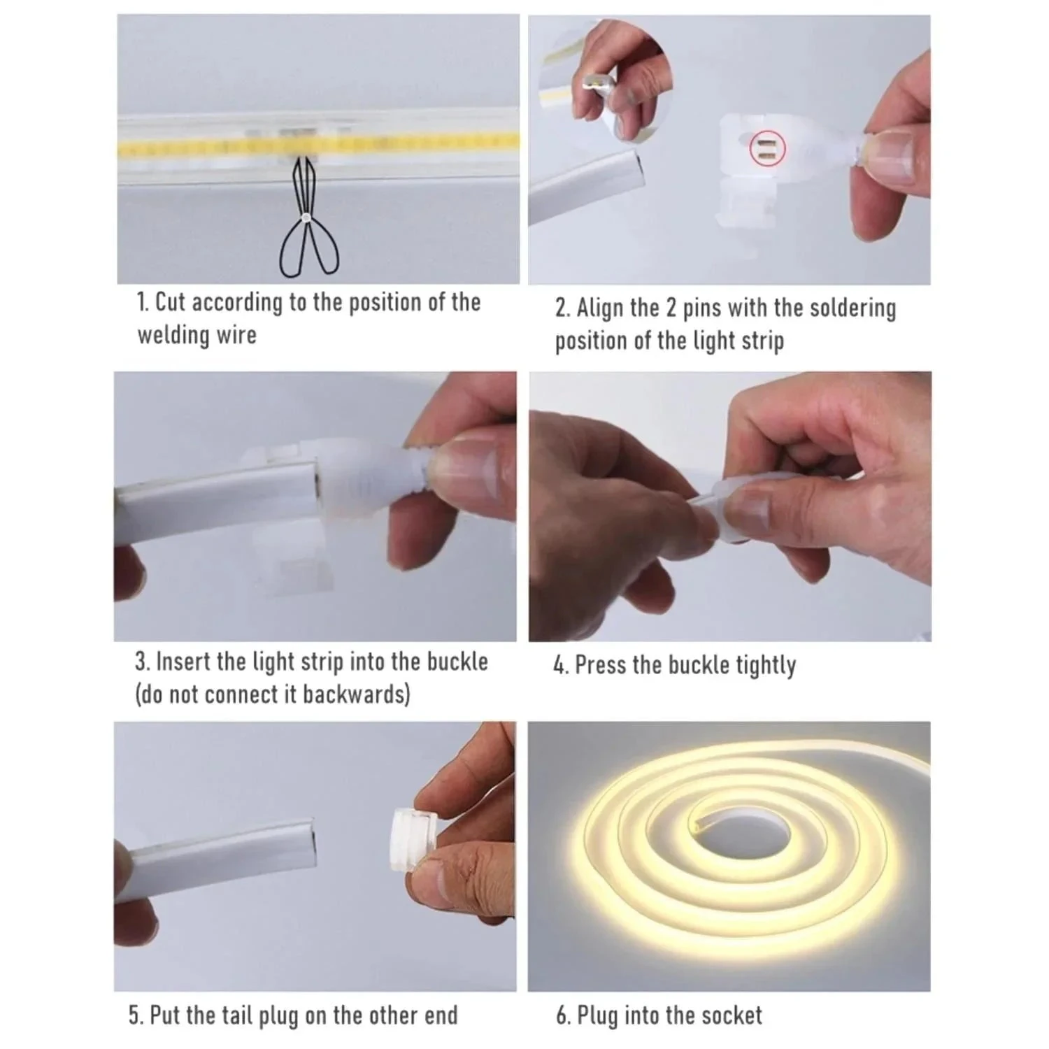 This is Single Colour COB LED Strip Neon Flex AC 220V 240V Dimmer Connector Cable allows us to dim the light and control the brightness of the COB LED Strip 220V 240V. The length of the Connector is 30 cm from the 3 Pin UK Plug to the LED Neon Flex.