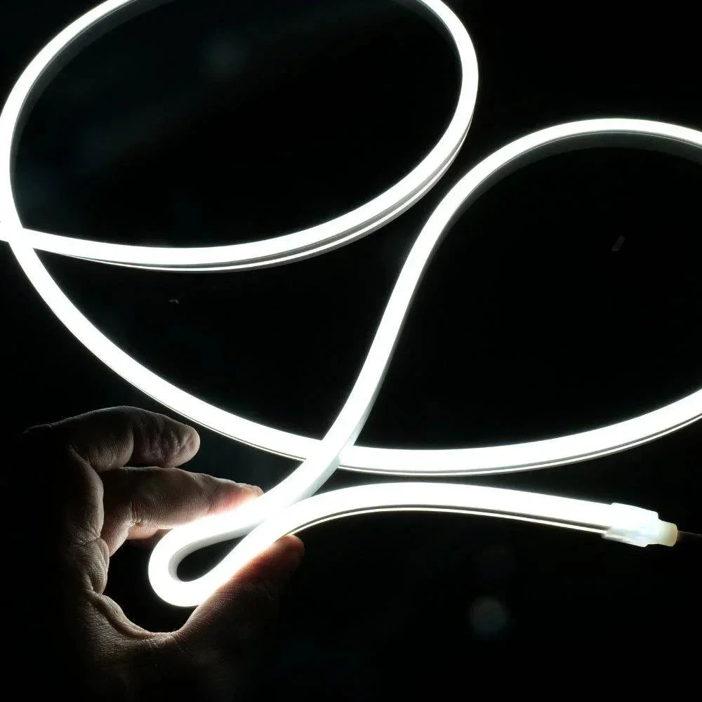 The new 6x12mm 24V neon flex can do 12m continuous run without any voltage drop with power on one end and 20 metre continuous run with power on both ends. You can also do a 20m continuous run with one side power, however, there will be a 5-10% voltage drop. It is a low-voltage, compact, highly flexible, dot-free, Linear lighting solution.