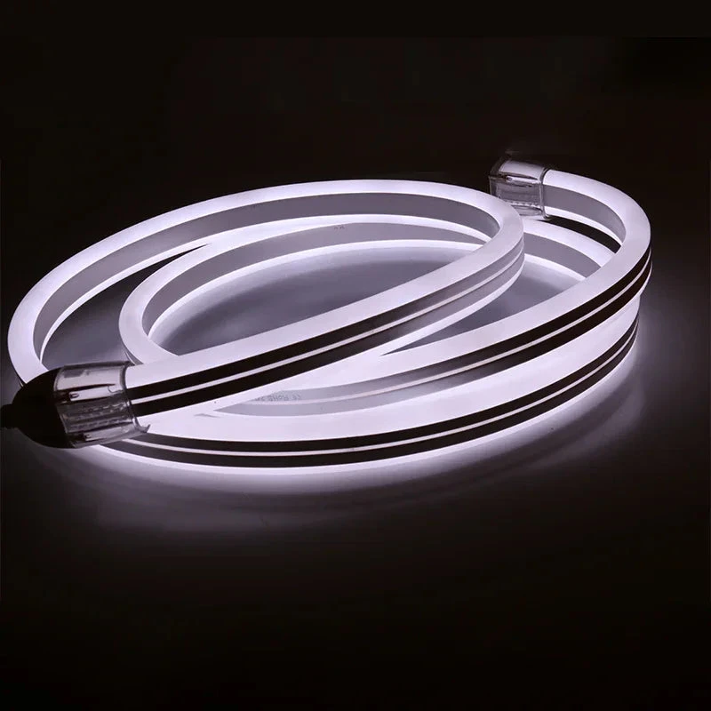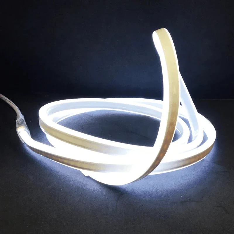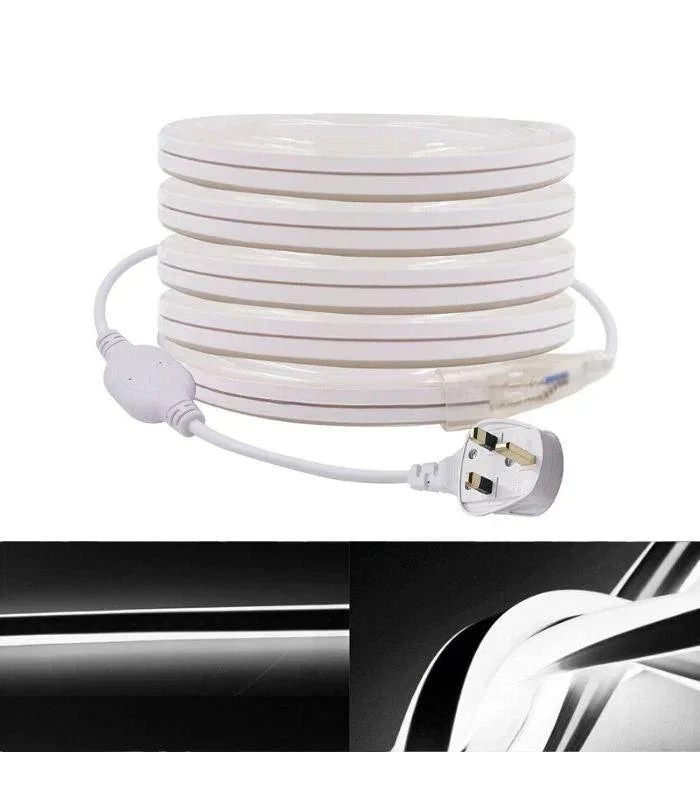 ATOM LED Neon Flex Double Sided Neon LED Strip Light 220 – 240V 9W/m has a translucent High quality Silicone cover that offers uniform light and performs better than the standard Strip lights with visible individual LED Chips. Because it’s so flexible, its installation is simple and doesn’t require any specific tools, allowing it to adapted it to all sorts of corners, logos, signs, etc. The Waterproof feature of the Light makes it ideal for Indoor and Outdoor* use.