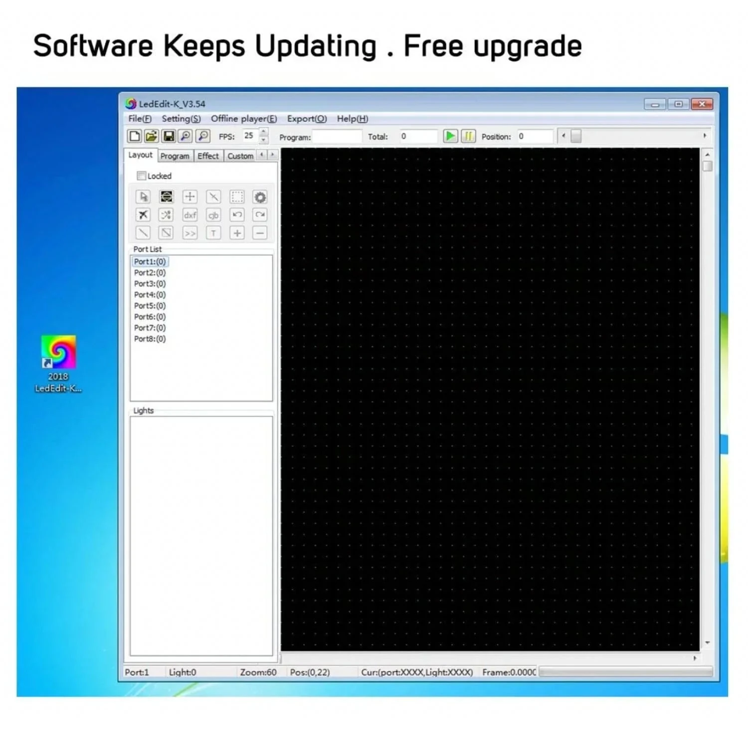 Install LEDEDIT software on Windows computer. Can not work with Mac - Great for DIY projects: It supports LED strip/ LED matrix panel/Special-shaped/different data directions projects. Various special lighting effects. like effects-firework ,chasing,rainbow,scrolling text,single color,full color,running etc . There is a lighting effect library in the LEDEdit software. You also can use some videos/pictures as your own lighting effect library .