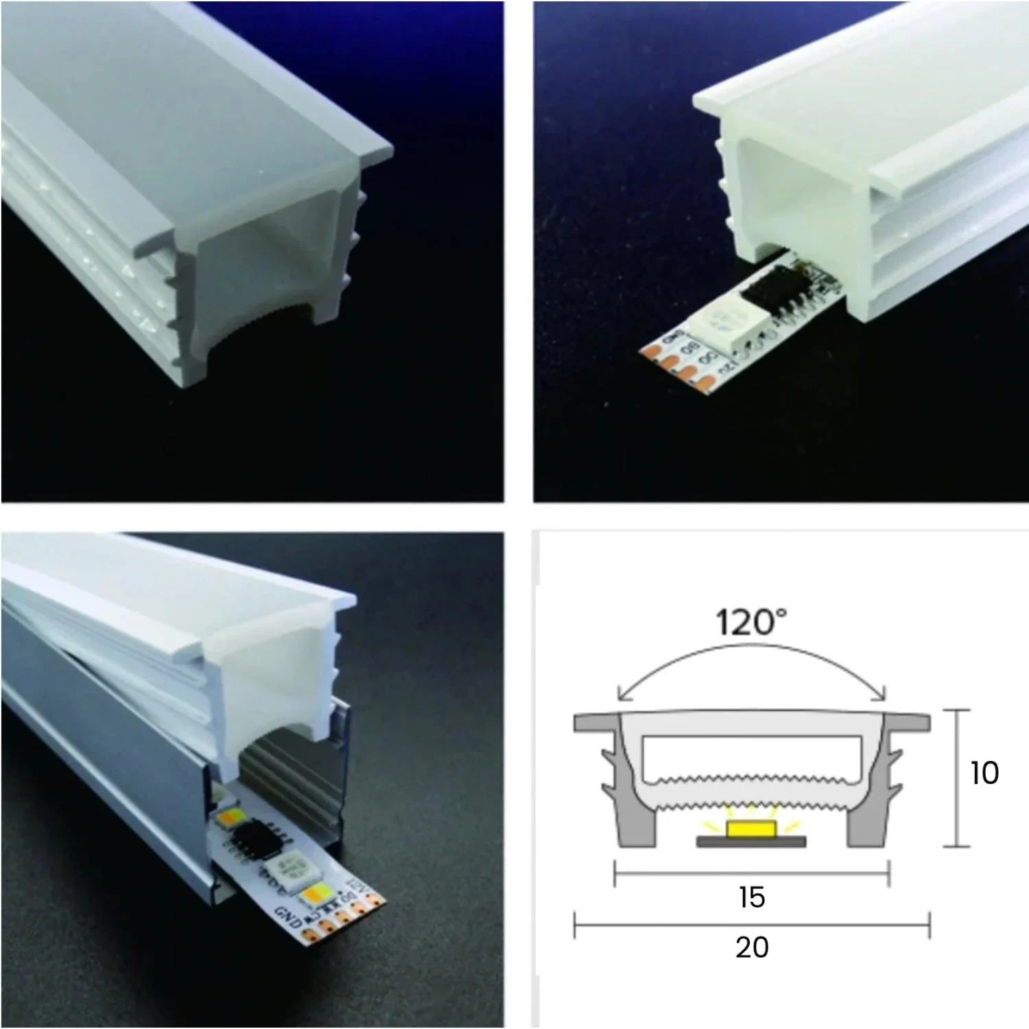The silicone profiles are flexible and when the LED Strip is installed, a Neon light effect is achieved. They are made for lighting modern environments with a clean and elegant indirect light. Thanks to the opaque cover a diffused lighting effect is created which is pleasing to the eye.