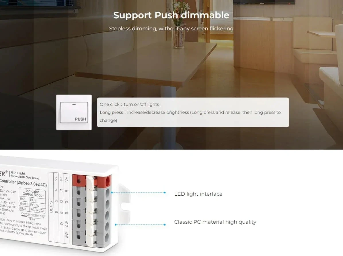 • Compatible with Mi-Light / MiBoxer 2.4GHz series remote