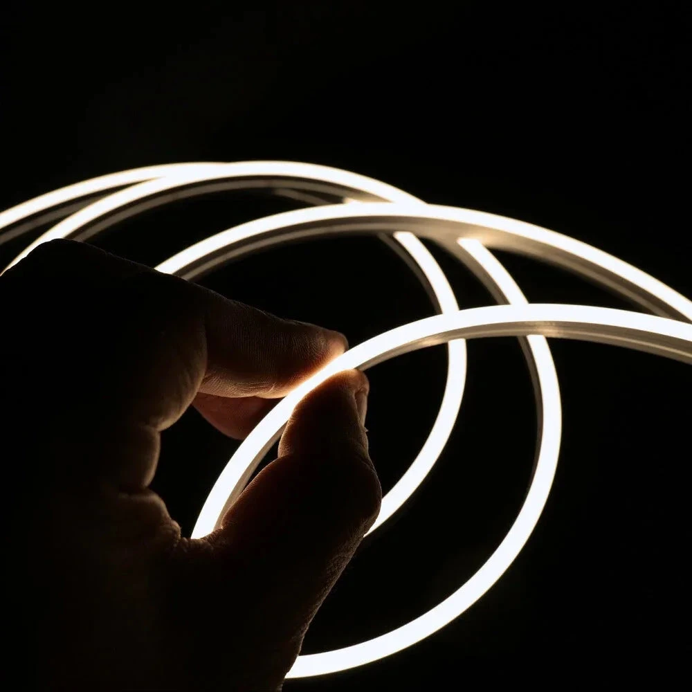 Our smallest mini Natural White LED Neon Flex 4000K 4x8mm offers a non-spotting, fully diffused light output. The splashproof silicon coating is fully flexible with a bend radius of up to 10mm, making it ideal for use in signage and display installations both indoors and outdoors. It is cuttable less than 0.5mm almost free cut and super bright with 168LEDs per Metre.