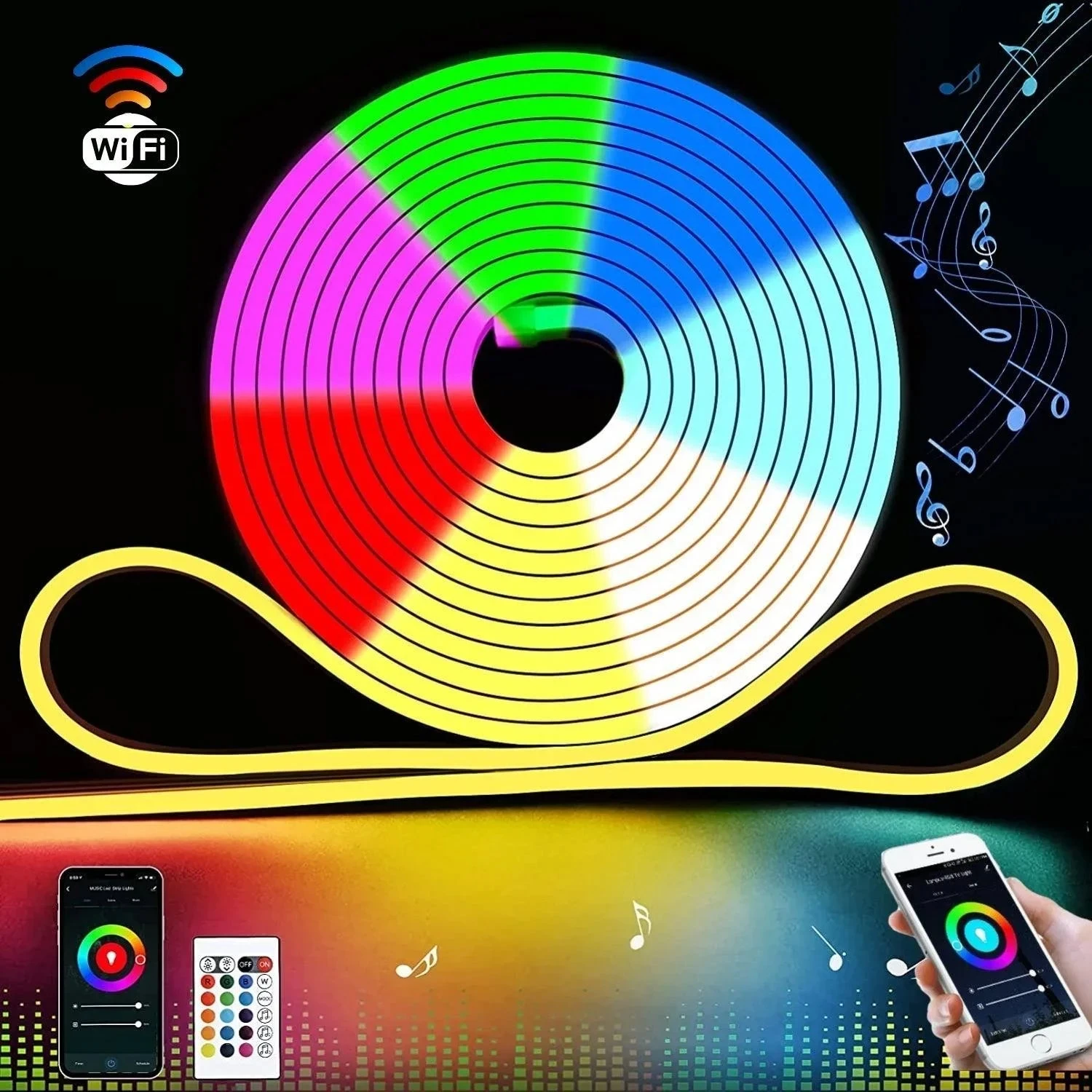 - Music LED RGB NEON FLEX: There is a built-in music feature that will sync with the music on your mobile device. The RGB Neon Flex will change colours with beats of music.