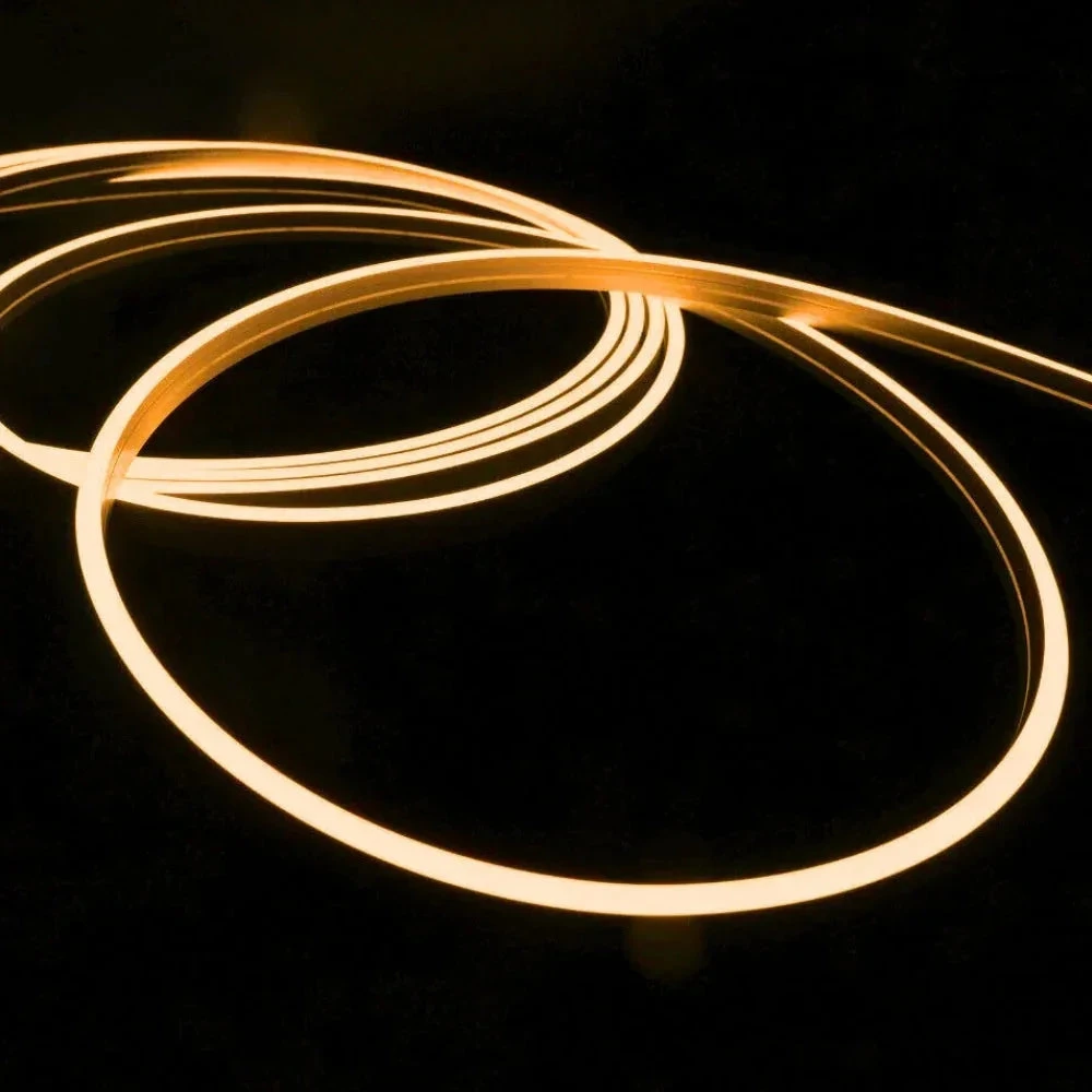 Our smallest mini Warm White LED Neon Flex 2700K 4x8mm offers a non-spotting, fully diffused light output. The splashproof silicon coating is fully flexible with a bend radius of up to 10mm, making it ideal for use in signage and display installations both indoors and outdoors. It is cuttable less than 0.5mm almost free cut and super bright with 168LEDs per Metre.