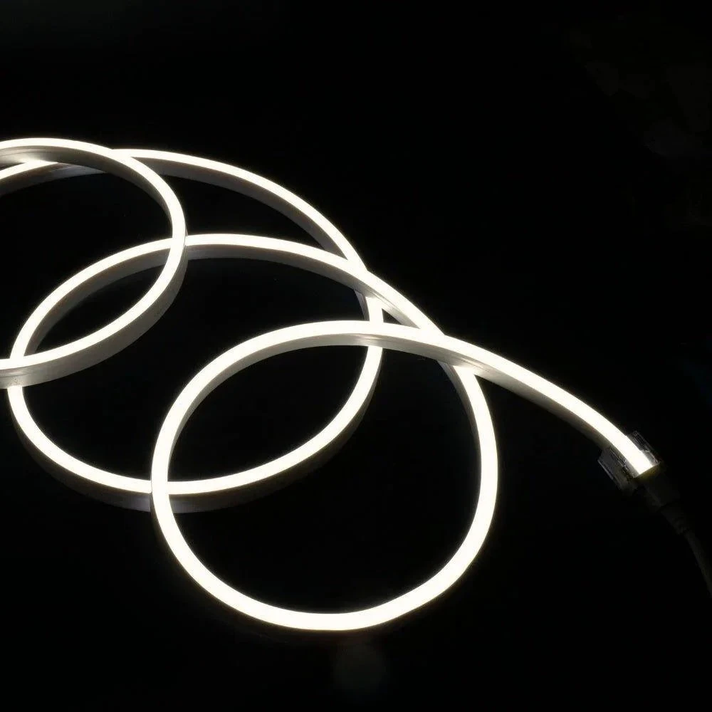 Our high-quality IP68 LED Neon Flex is horizontal bending which emits a bright warm white LED light from the top of the flex. Our led neon flex is a low-voltage, compact, highly flexible, Pixel-free, Linear lighting solution. It can do a continuous run of 20 metres without any voltage drop.
