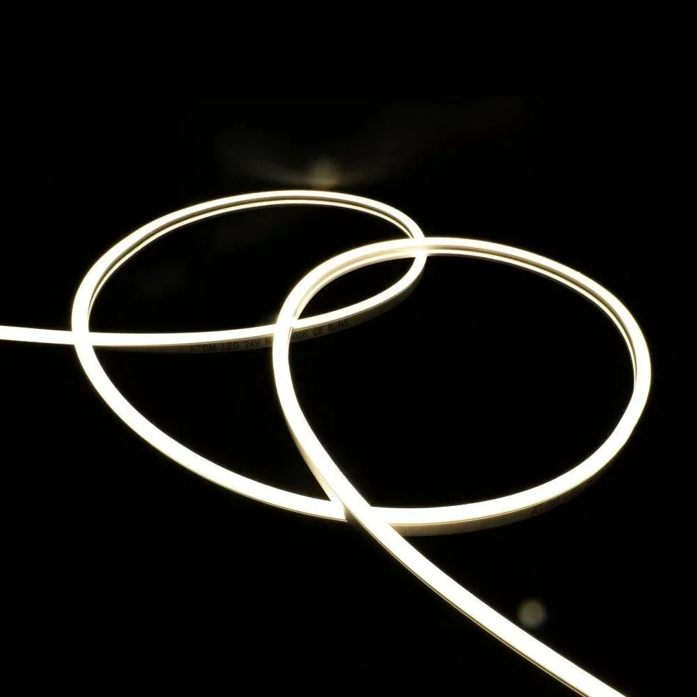 The new 6x12mm 24V neon flex can do 12m continuous run without any voltage drop with power on one end and 20 metre continuous run with power on both ends. You can also do a 20m continuous run with one side power, however, there will be a 5-10% voltage drop. It is a low-voltage, compact, highly flexible, dot-free, Linear lighting solution.