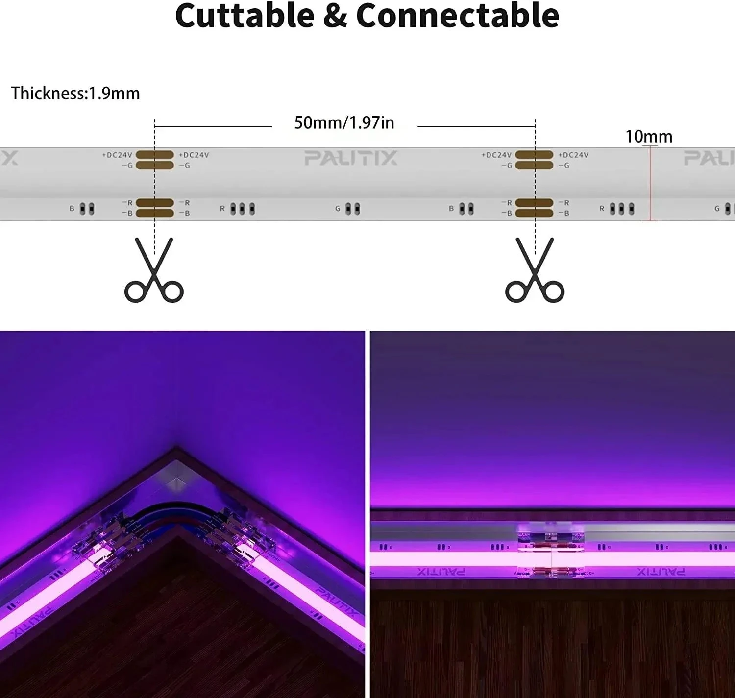 Our Professional COB LED Strip Light is manufactured using high-quality materials and components. Its flexibility and high brightness make it ideal for a range of installations.Â