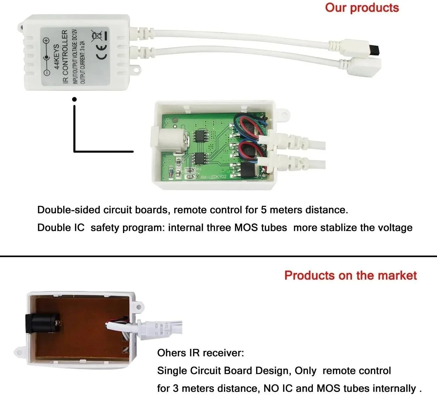 - Good & Full Material: Using double layer copper on PCB board to keep the mixed colors more even. Led IR remote controller has over charging, short circuit protection and memory function. Power Supply makes sure the safety for adults and kids.