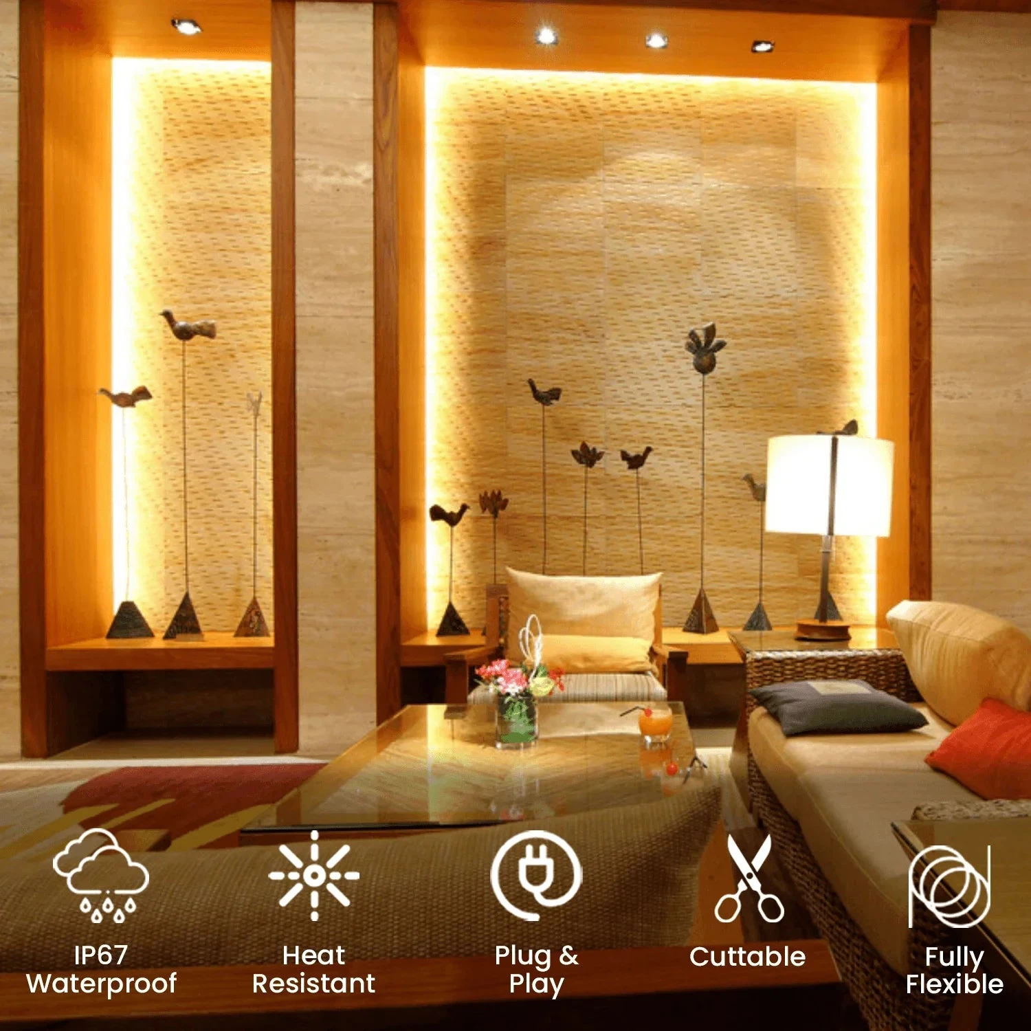 This product is not suitable for recessed outdoor installations on the ground or any surface exposed to direct water or heavy weather. For such applications, we recommend using IP67 or IP68-rated neon flex, which is specifically designed for outdoor recessed use and offers higher protection against water and environmental conditions.
