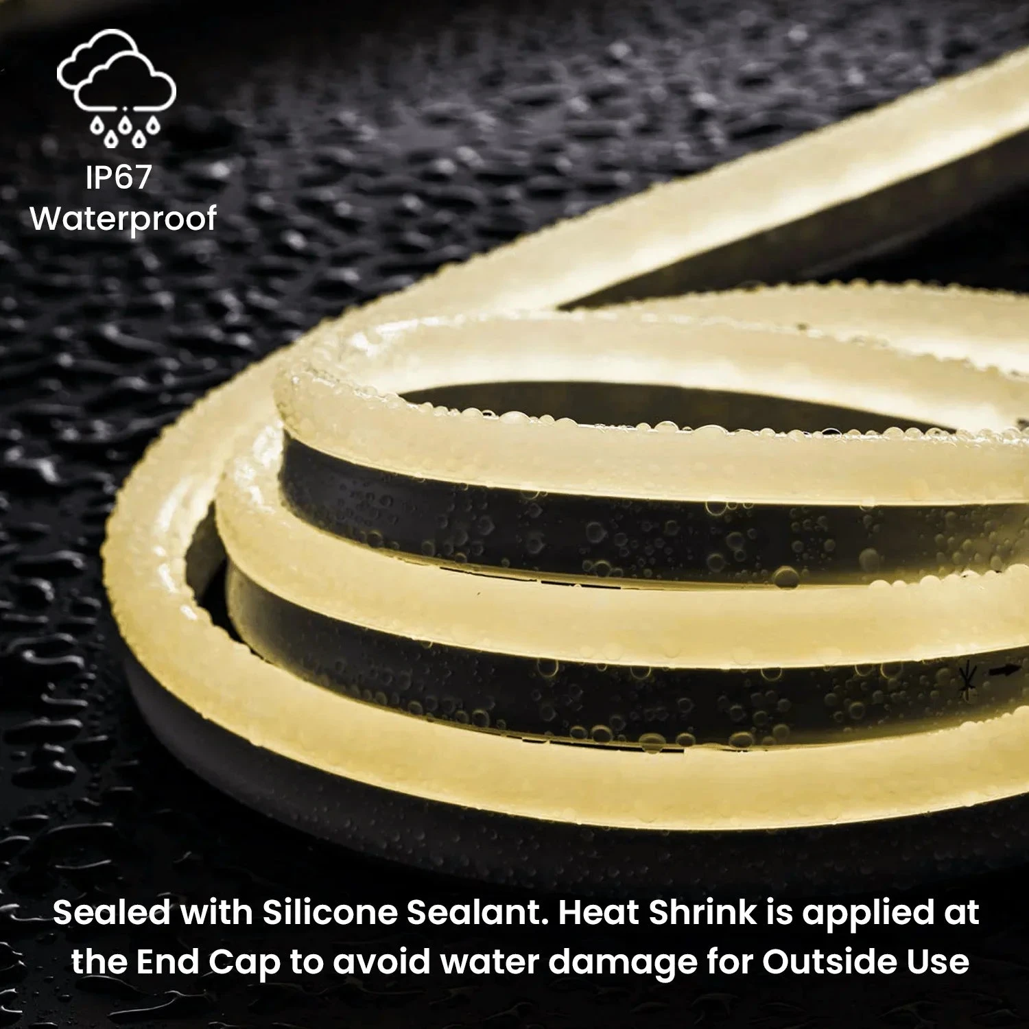 ATOM LED Neon Flex Double-Sided Neon LED Strip Light 220 – 240V 9W/m has a translucent High-quality Silicone cover that offers uniform light and performs better than the standard Strip lights with visible individual LED Chips. Because it’s so flexible, its installation is simple and doesn’t require any specific tools, allowing it to adapted it to all sorts of corners, logos, signs, etc. The Waterproof feature of the Light makes it ideal for Indoor and Outdoor* use.